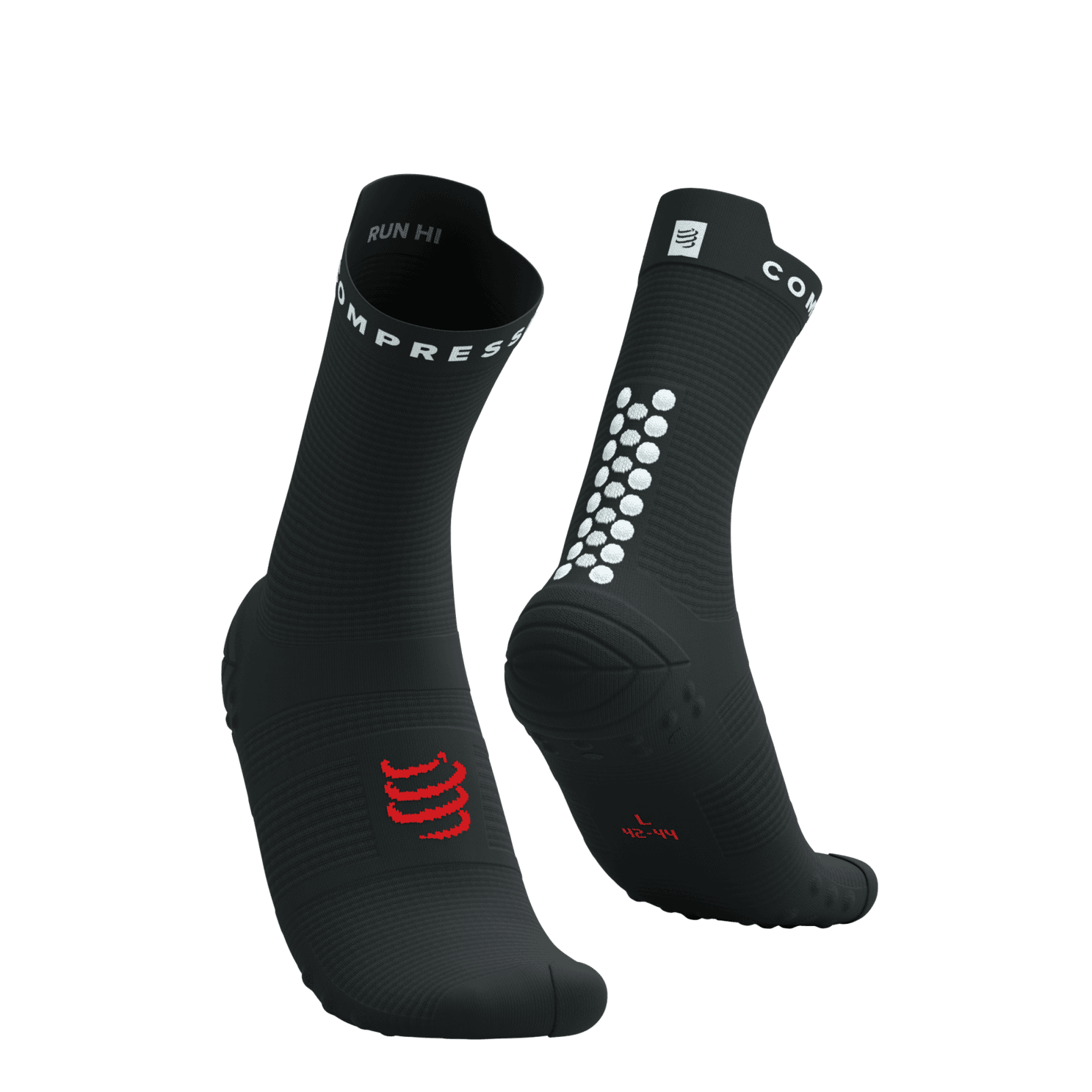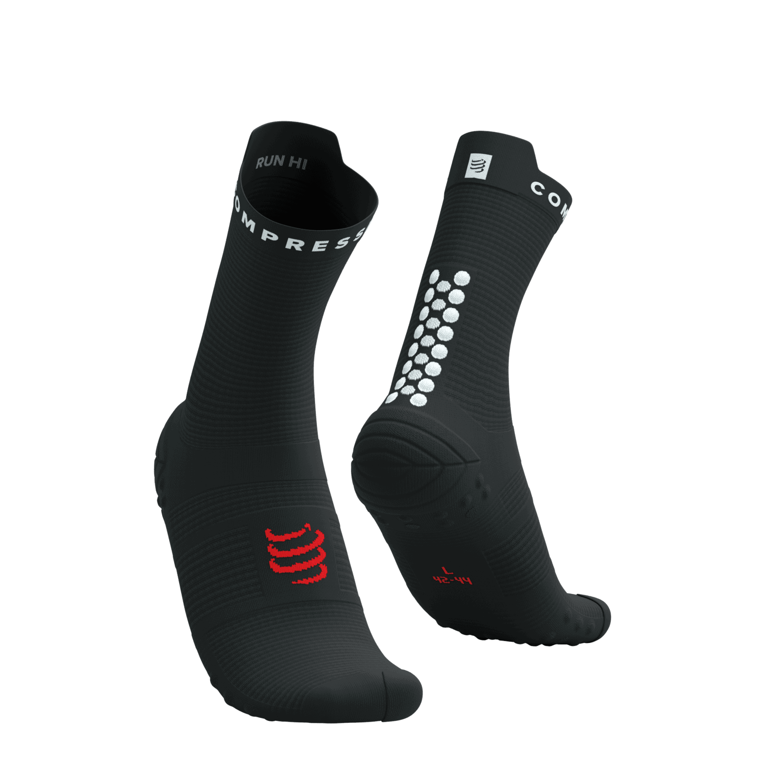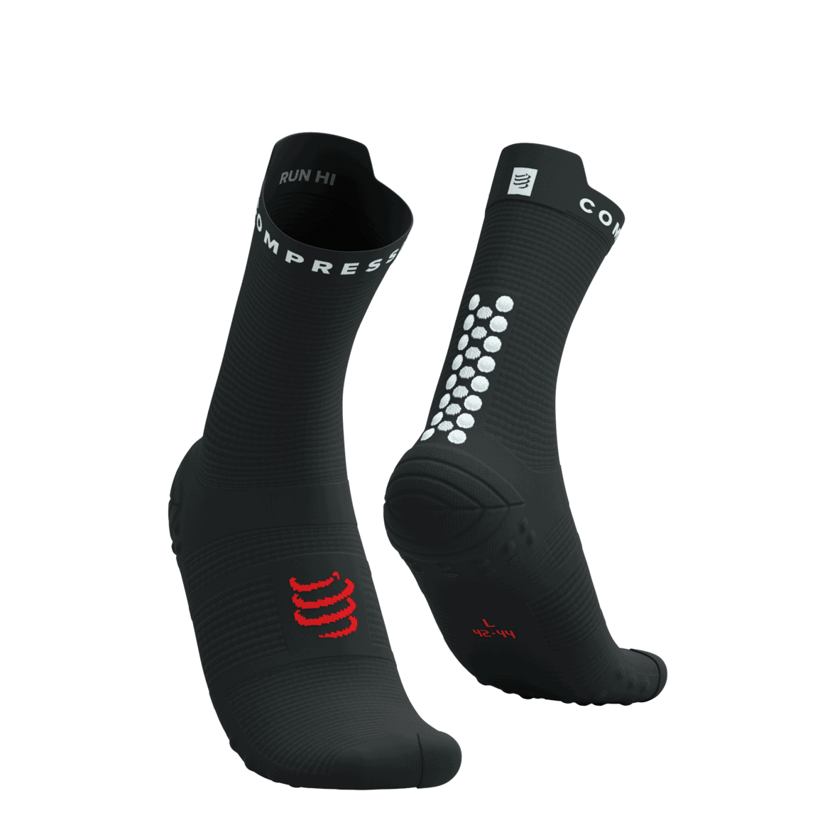 De Compressport Pro Racing Socks v4.0 Run High zijn ontwikkeld in samenwerking met topatleten. Elke zone van de sok heeft een specifieke functie: demping onder de voet, ventilatie bovenop en ondersteuning rondom de enkel en achillespees. De dubbele rijen 3D.Dots bij de achillespees beschermen dit gevoelige gebied en verbeteren het draagcomfort.